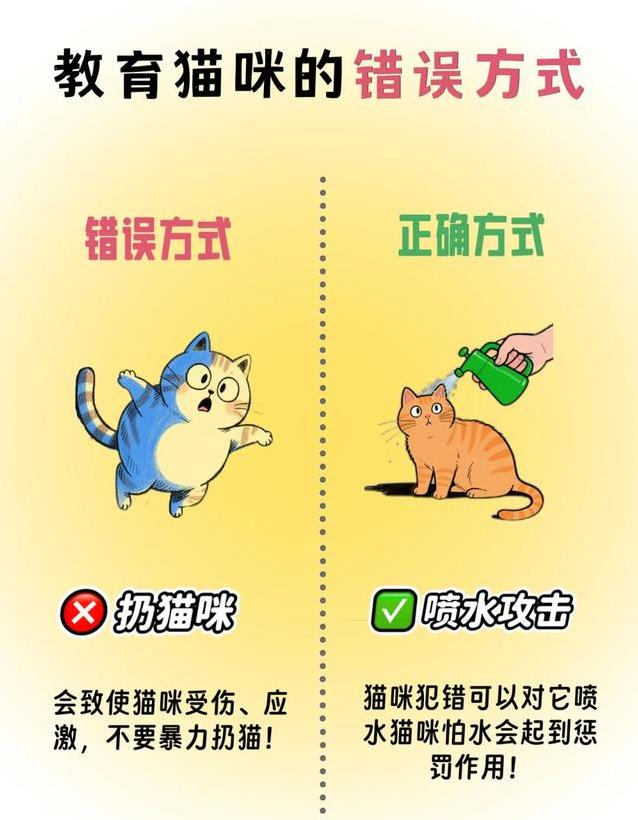 直接把猫咪扔出去,觉得这样它就知道错了?别闹了!这招不仅让猫咪吓得魂飞魄散,还可能让它受伤。猫咪的应激反应可不是开玩笑,严重的甚至影响健康。正确的办法是用喷水壶轻轻喷点水。猫咪天生怕水,一喷它就老实了,既能让它记住教训,又不会真难受。
