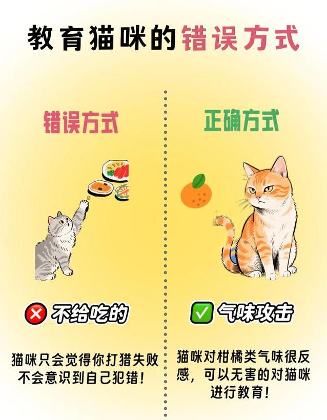 还有人觉得,猫咪不听话就不给饭吃,饿一饿就乖了。错!猫咪才不会觉得是自己错了,它们只会以为你这“铲屎官”打猎太菜,连饭都搞不定。猫粮还是得照常给,选点营养好、猫咪爱吃的,保持它们的健康才最重要。想惩罚猫咪,可以用点它讨厌但无害的气味,比如橘子皮的味道,轻轻一熏,它就知道不能再犯了。