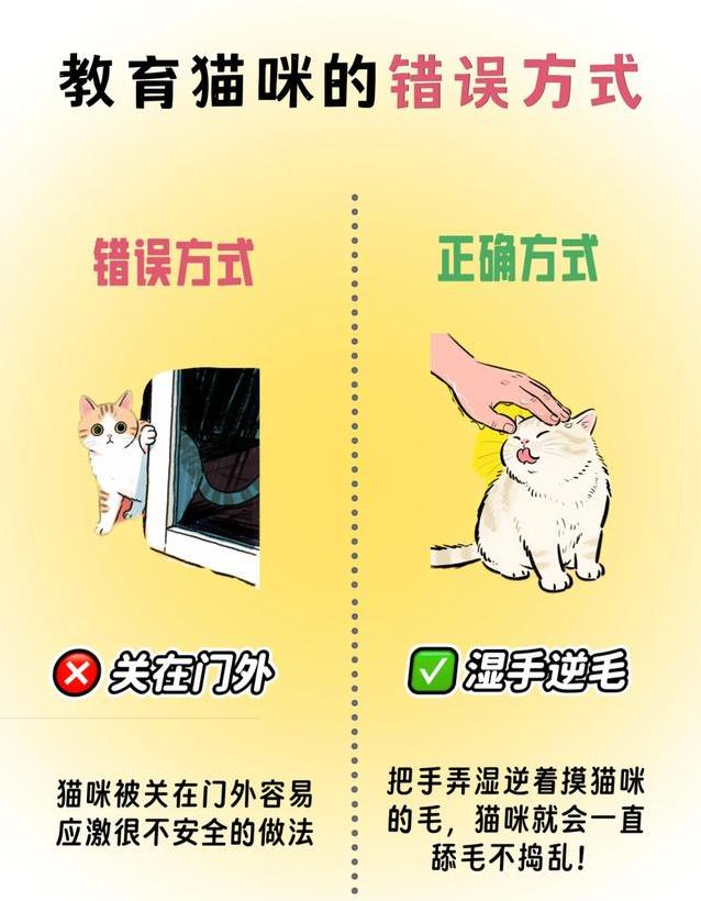 有些人喜欢把猫咪关在门外,以为这样能让它反省。结果呢?猫咪要么吓得乱窜,要么直接跑丢了!尤其那些不出门的家猫,门外对它们来说就是另一个世界。想让猫咪消停点,试试把手弄湿,逆着它的毛摸几下。猫咪会忙着舔毛,哪还有心思捣乱?